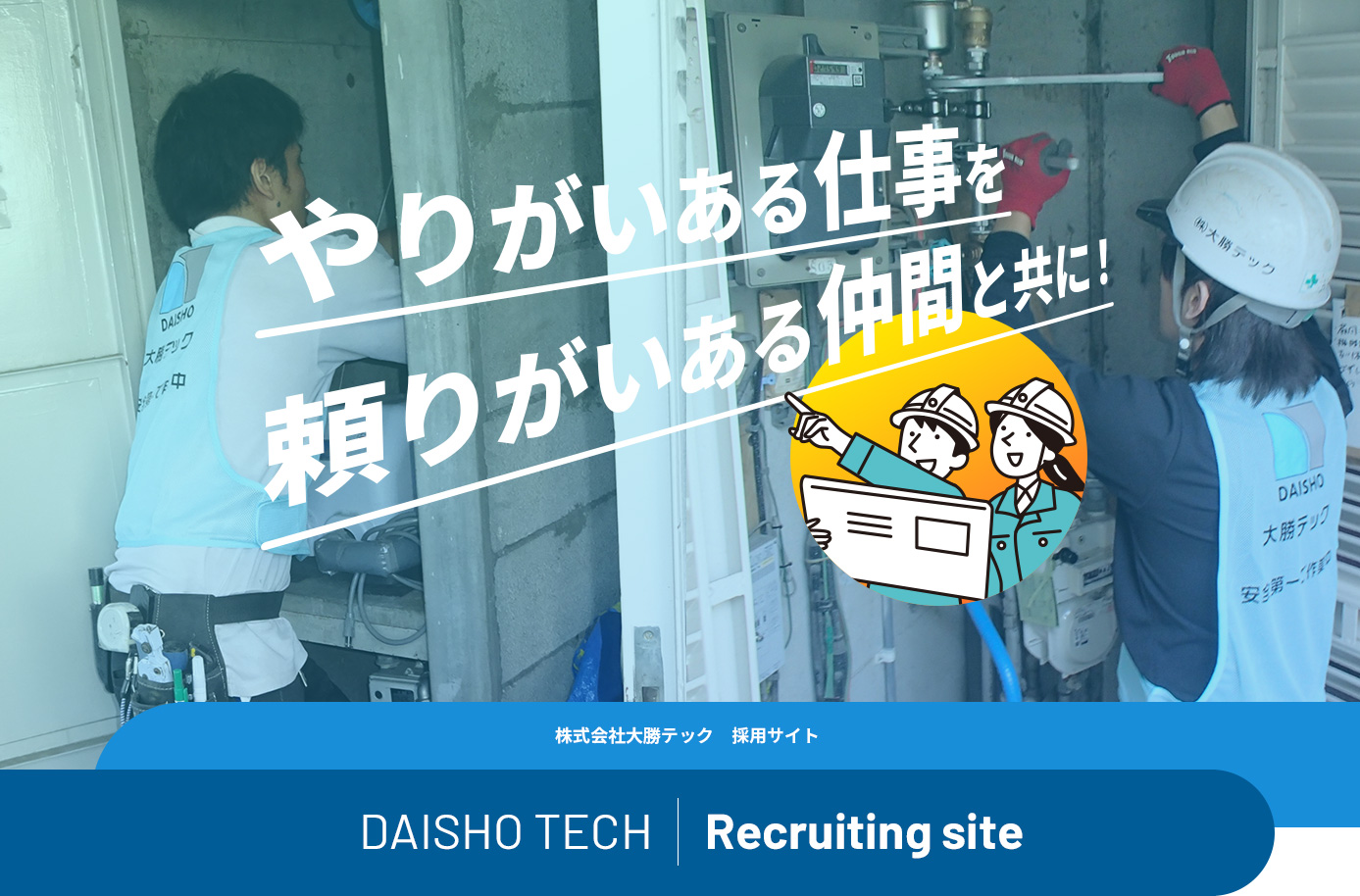 これから就活をしている皆様の中には、水道工事やさんの跡継ぎの方たちもいると思いますが、ぜひ大勝テックに修行に来てください。5年を目標に施工、施工管理、積算業務など希望する技術は全て指導いたします。そして家業に戻られて地元で活躍する技術者を多く育てることが私の目標です。卒業した先輩社員の中には現在地元四国に戻り家業を頑張っている先輩もおります。